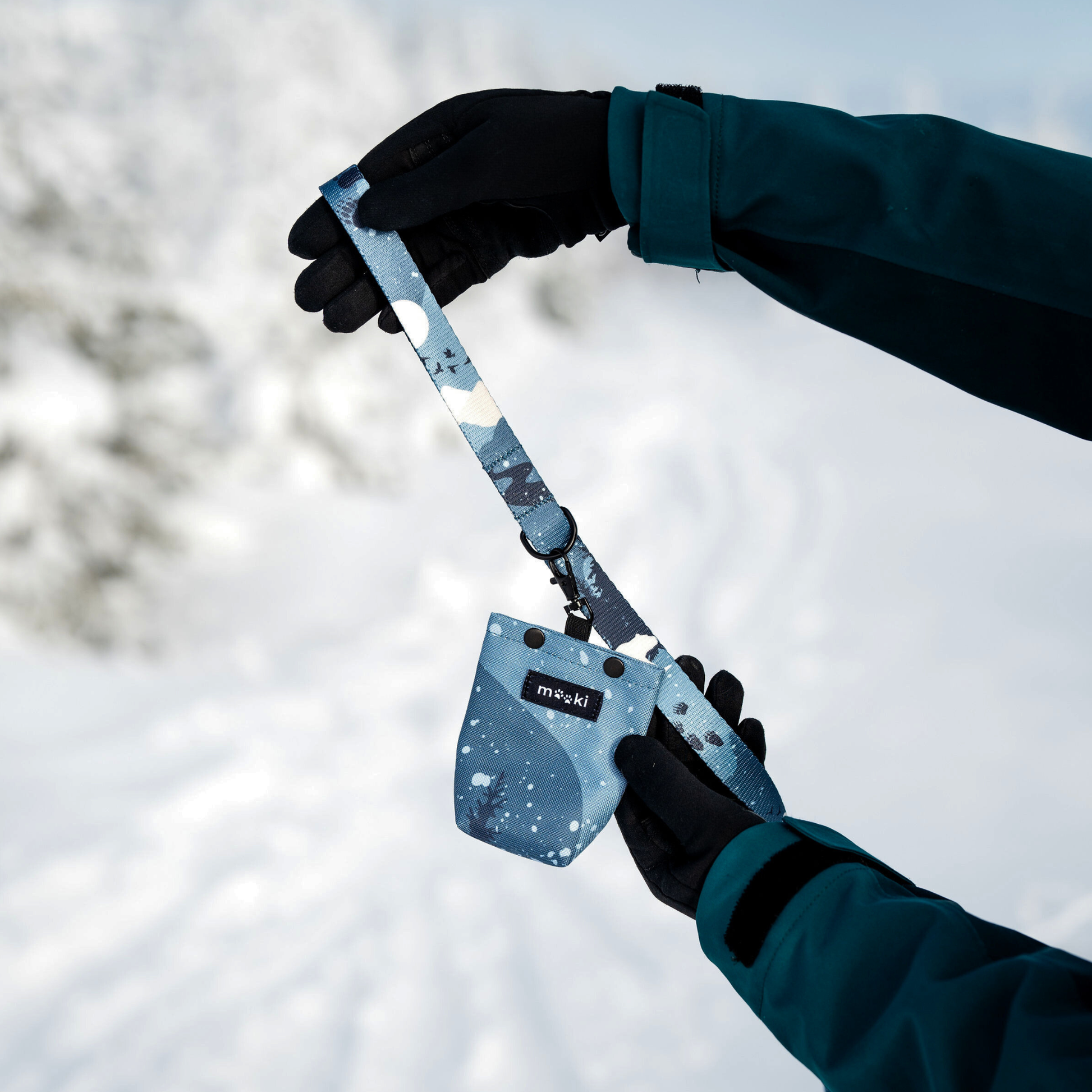 - Możliwość przyczepienia: etui wyposażono w niewielki karabińczyk umożliwiający przyczepienie do półkółka przy smyczy.